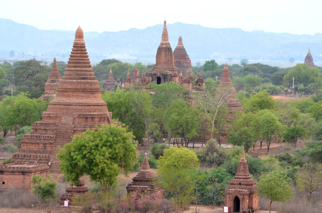 Southern view from Pyatthadar, with Dhamma Yazika can be seen at the far center of the photo. The land was barren. Ancient temples are dispersed beyond this point. This site is definitely not as good as Shwesandaw for us to see the sunset. Please click to enlarge this photo.