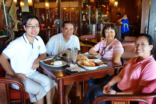 Pork rib rice noodle (upper left) and tom yam (upper right), bbq chicken (lower left) and local orange juice were some of the food that we tried in night market at Banzaan Fresh Mart, Patong. All of them were nice.The night market was full with locals and tourists (upper left). The owners of the stalls served good tom yam (upper right) and pancake (lower right) were always busy. The pancake with coconut tasted good.Last day in Phuket, we took our breakfast at Dang Restaurant, located at Thanon Ratuthit Songroipi near to Bangla Road, 3 minutes away from our hotel by foot,. We tried fried noodle with vegetable and noodle soup with beef. The fried noodle was nice, but the noodle soup with beef was a bit less tasty. Afternoon, we took our lunch at Banzaan Fresh Mart. There was a food court at the upper level of the fresh market. Several stalls offered cooking service, helping visitors to cook the seafood bought from the lower level, with charges, of course.
